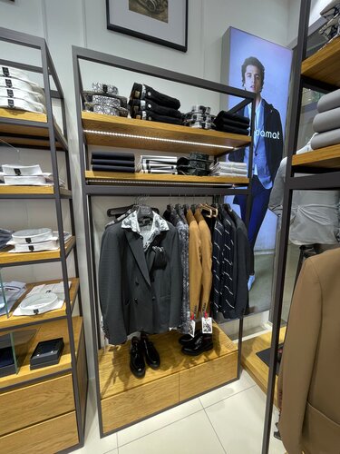 Покупали сыну костюм на выпускной. Очень большой выбор мужской одежды костюмы, рубашки, обувь аксессуары... Модели совмещают классику и оригинальность за счет цвета, покроя , материала. Отдельная благодарность консультантам. Предлагали к примерке очень-очень многое пока не нашли то что устроило и сына и родителей. И даже провели в ателье в котором идеально подогнали длину. Все очень понравилось. Огромная благодарность коллективу. И хороших продаж)))